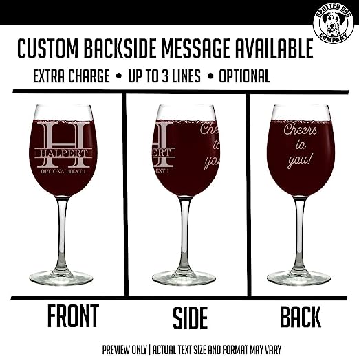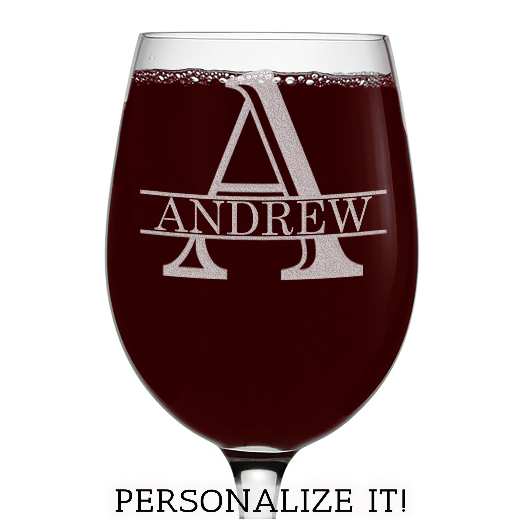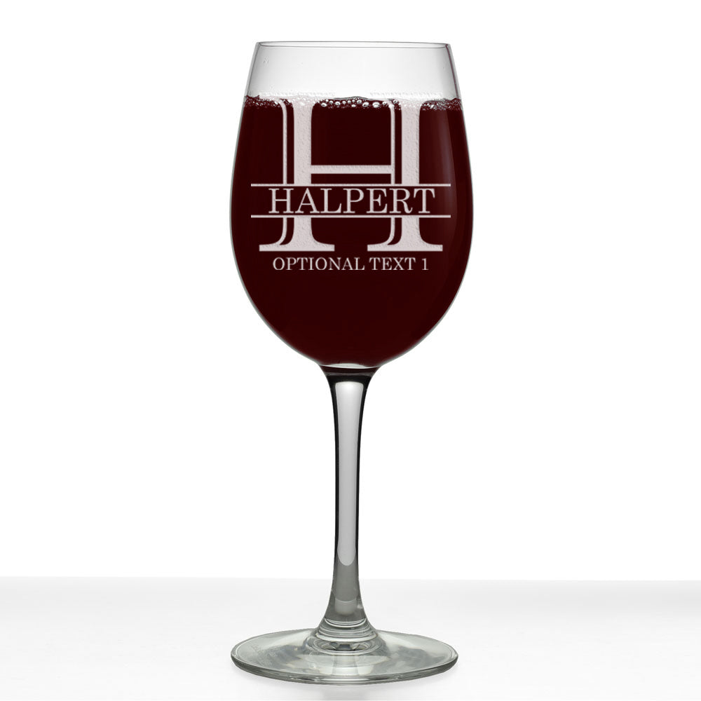 Halpert Personalized Etched Monogram Stemmed Wine Glass 16oz