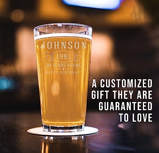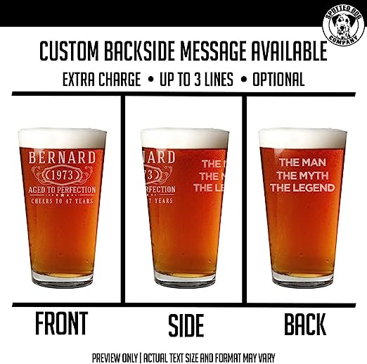 Celebrate their big year with a pint glass that’s as personal as it is practical. Our Bernard Etched Pint Glass features a bold, classic layout with a customizable name at the top, milestone year in the center, and your choice of message at the bottom.