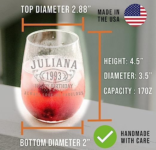Whether it’s for “Est. 1964” or “Officially Retired,” this 17oz stemless wine glass makes an unforgettable gift.