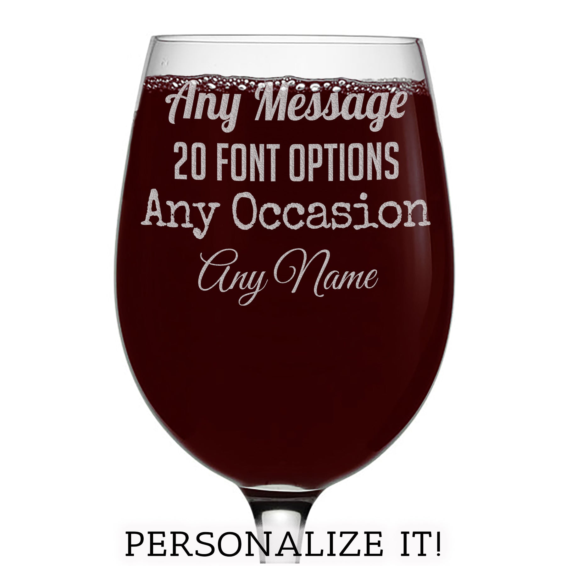 Your Custom Text Personalized Etched Stemmed Wine Glass 16oz