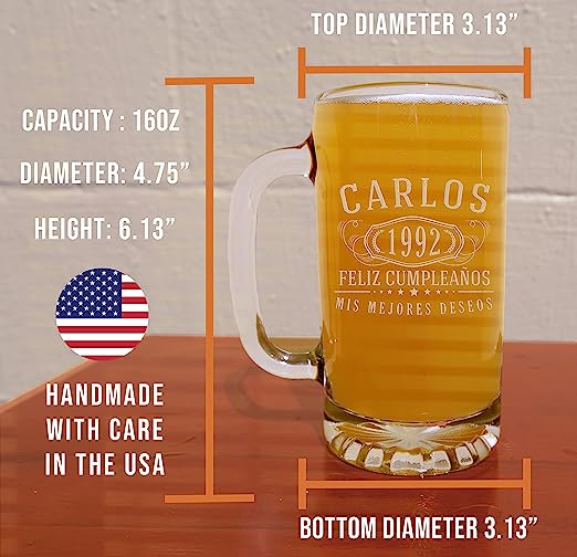 • 16 oz high-quality handled beer mug