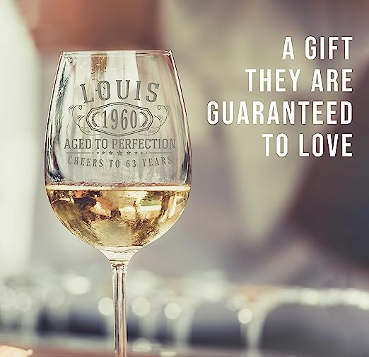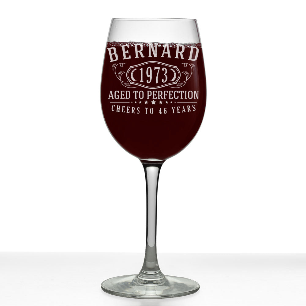 Celebrate milestones with elegance using our Bernard Etched Stemmed Wine Glass. Featuring a bold layout with a customizable name at the top, special year in the center, and a personal message at the bottom, this 16oz wine glass is the perfect gift for birthdays, retirements, and celebrations of all kinds.