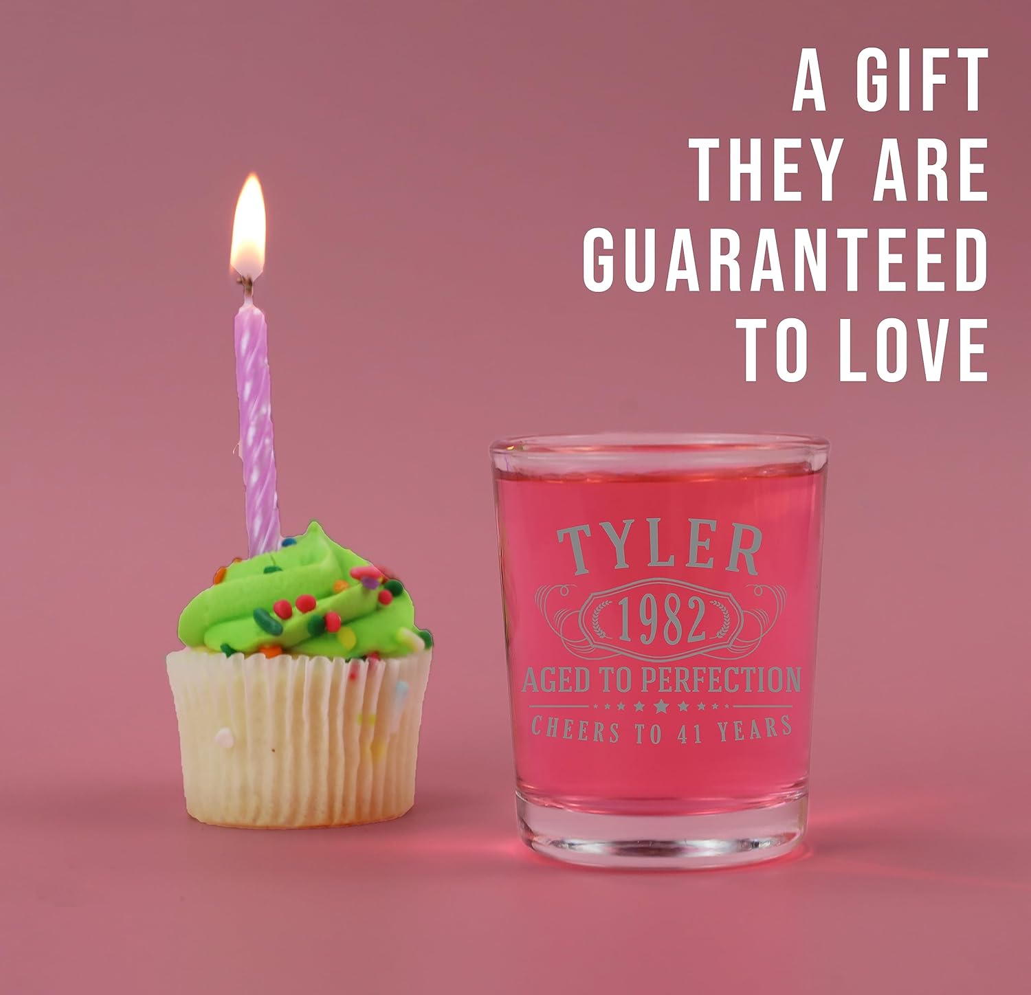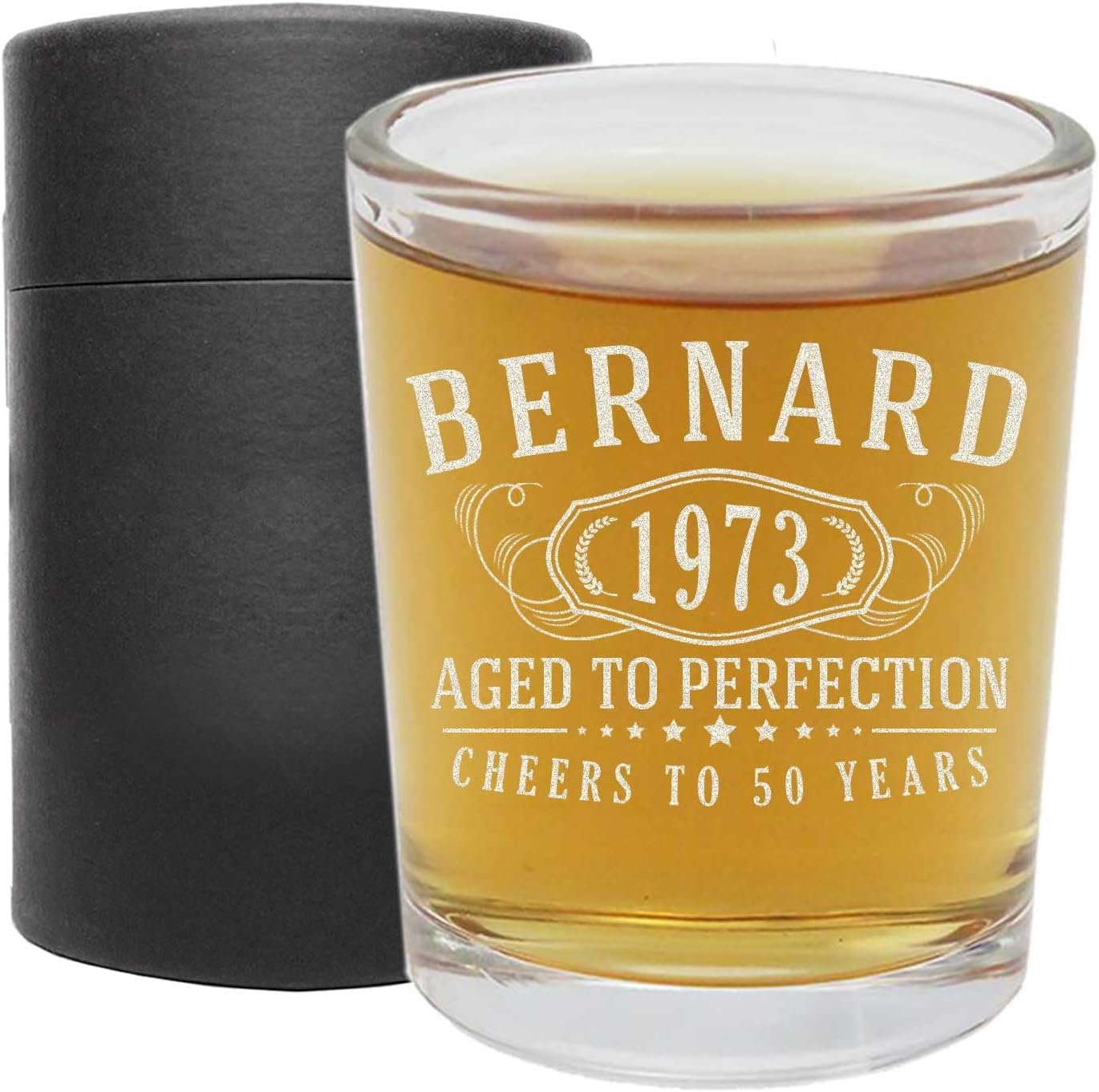 Celebrate milestones in style with our Bernard Etched Shot Glass, personalized with your name, a special year, and a custom message. This classic 2.5oz glass features a sleek, laser-engraved layout with your name at the top, bold year in the center, and custom text below — perfect for birthdays, retirements, anniversaries, and more.
