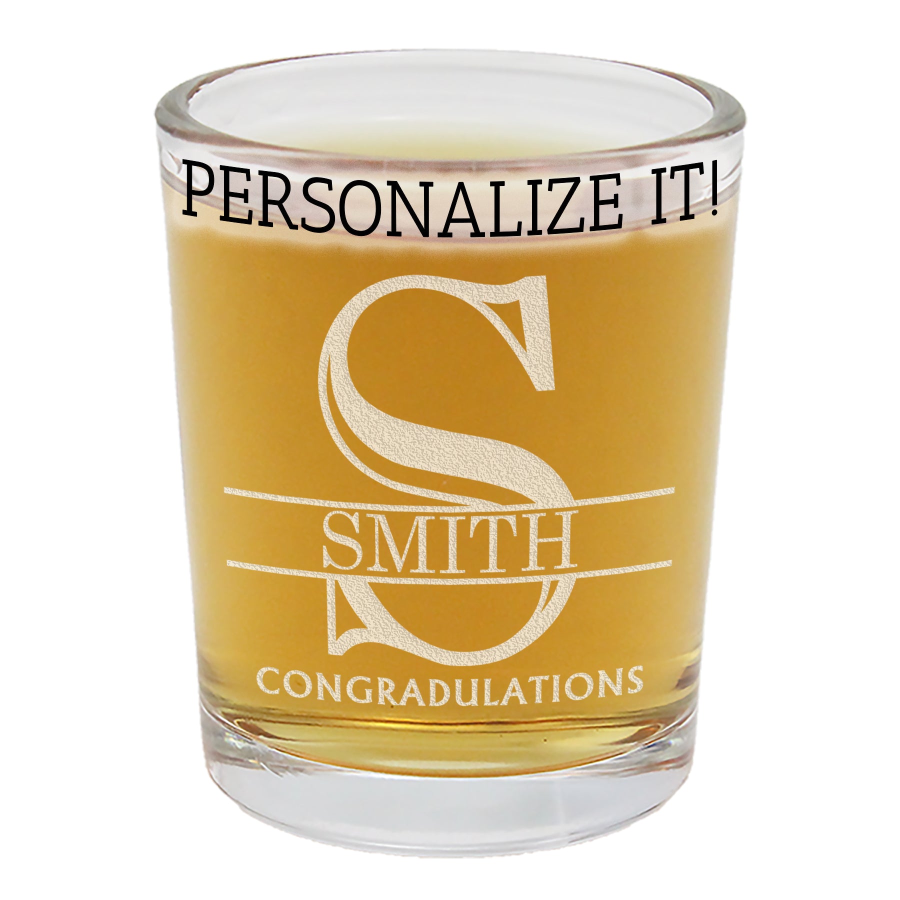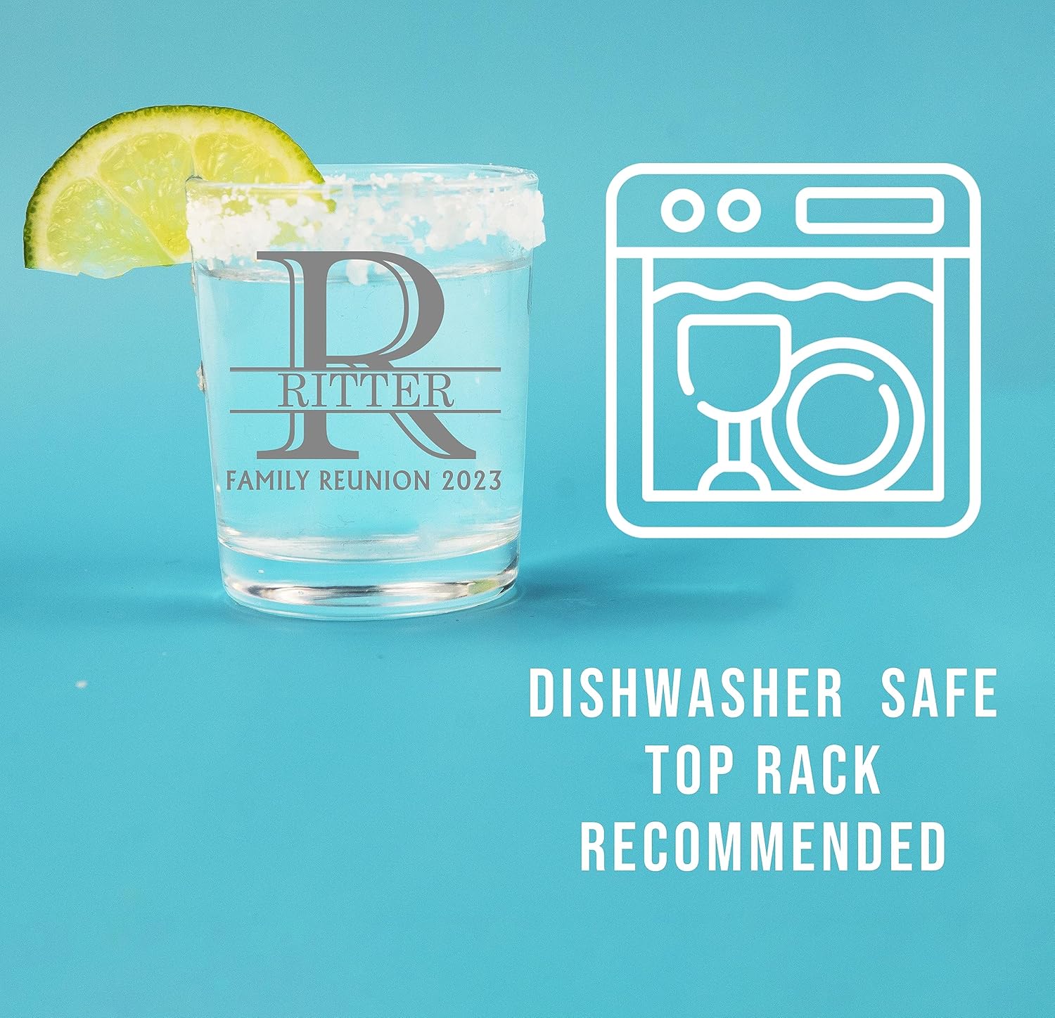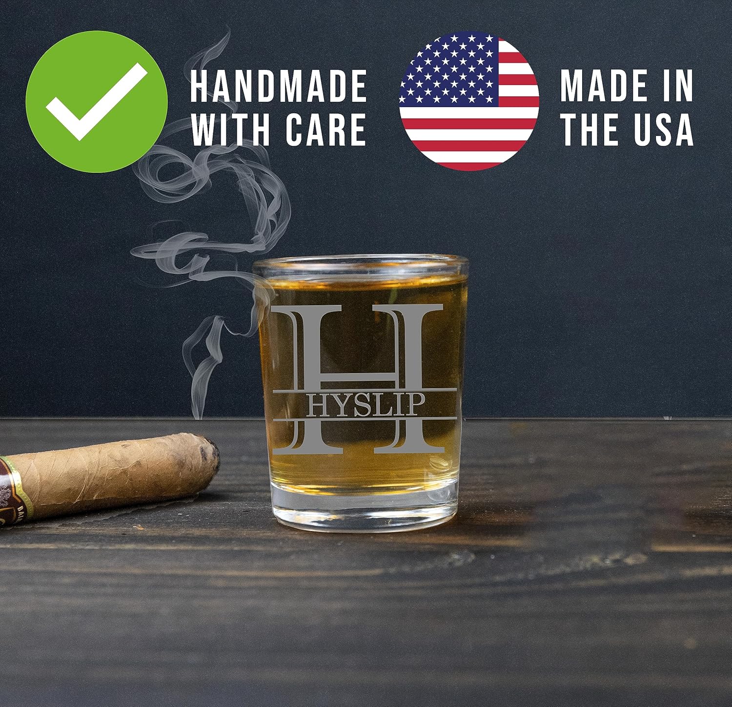 A modern take on a timeless classic, our Halpert Etched Shot Glass features a bold monogram letter with a customizable banner across the center — perfect for last names, nicknames, or a short message.