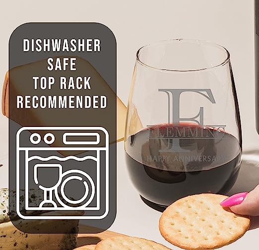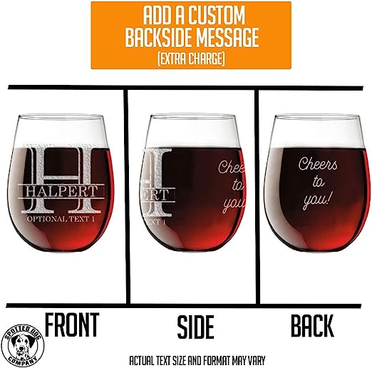 Custom Etched Stemless Wine Glass — Halpert Monogram Design