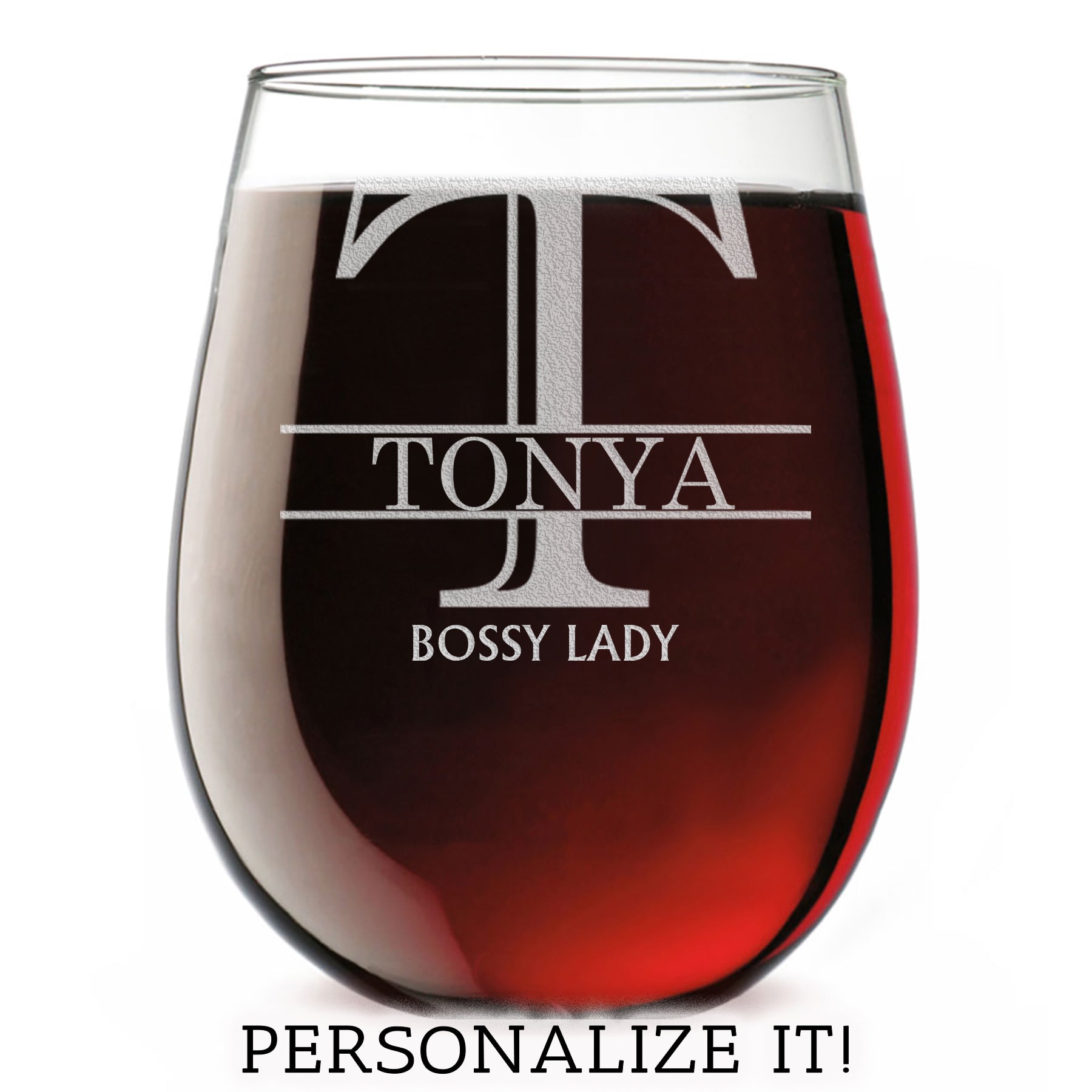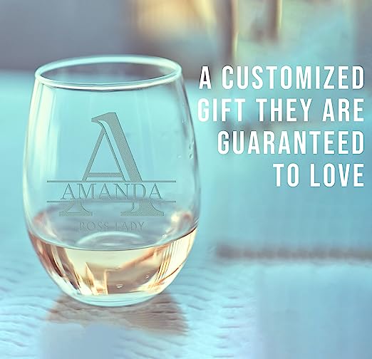 Halpert Personalized Etched Monogram Stemless Wine Glass 17oz